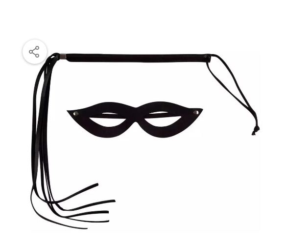 O Chicote de tiras é composto por tecido sintético que não irá machucar com o atrito na pele. Seu cabo é composto por PVC e possuindo detalhes metálicos, acompanha uma delicada máscara.